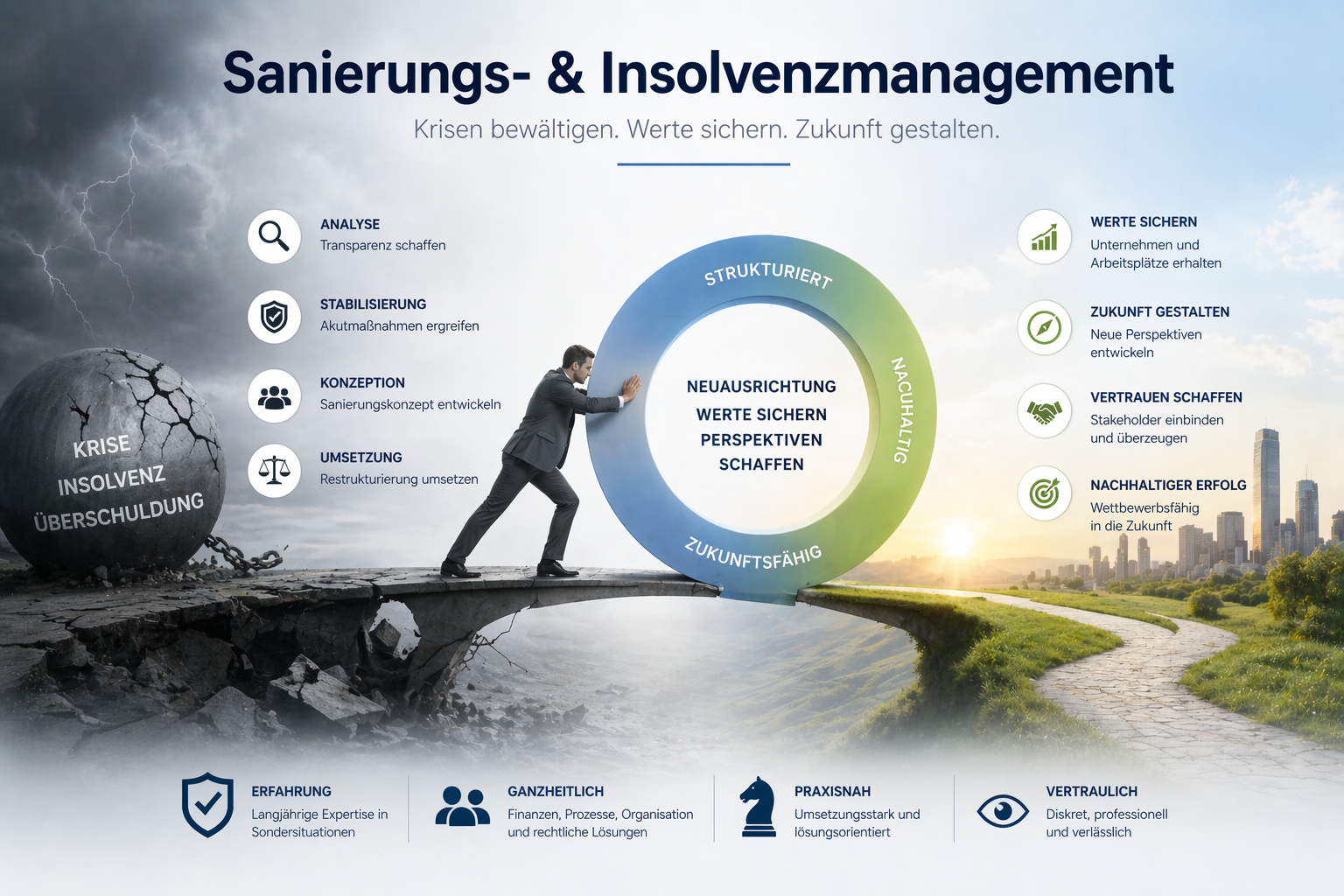 Aus Schutz der Unternehmen (Außenwirkung am Markt), können wir bzgl. Sanierungs- & Insolvenzmanagement keine Referenzen erstellen.